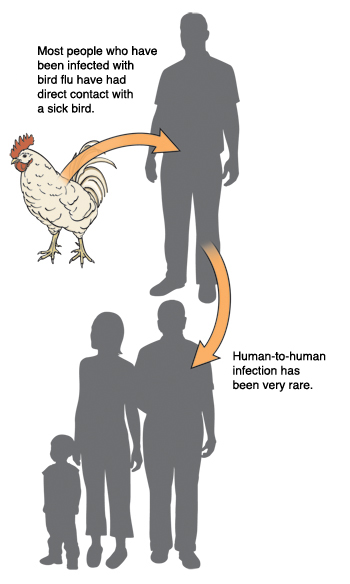 In most cases, they resemble those of in very few instances, bird flu has been transmitted from one human to another.